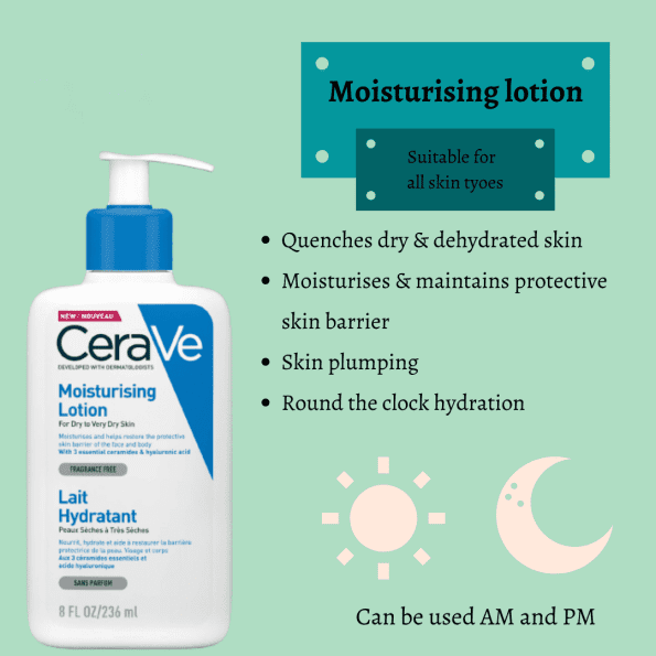 Cerave Daily Moisturising Lotion is formulated with three crucial ceramides, which work together to rebuild the protective layer of your skin and bind in moisture. The non-irritating, fragrance-free, light-weight, and effective CeraVe products are perfect for people with sensitive skin and light skin tones.